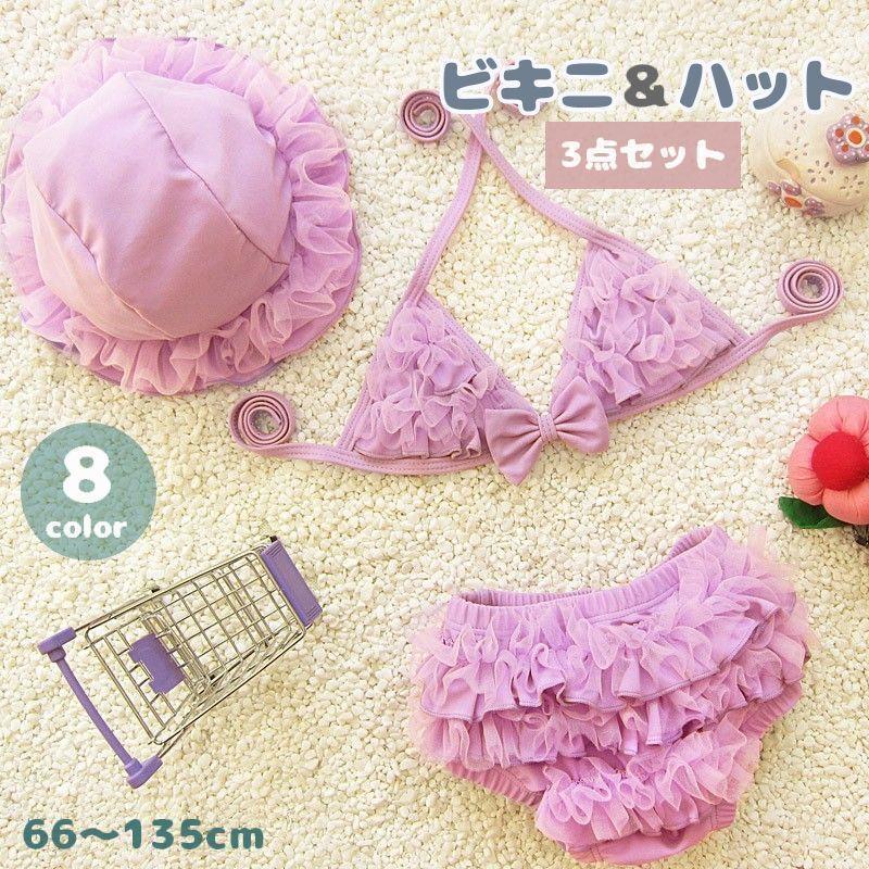 ビキニ 帽子 3点セット キッズ ベビー 子供用 赤ちゃん 女の子 スイムウェア 水着 ハット フリル リボン かわいい 海水浴 プール 温 おしゃれ