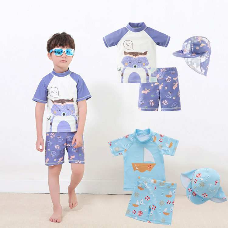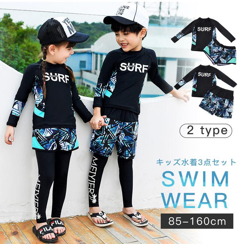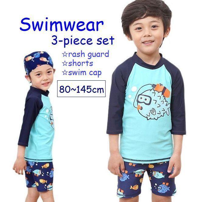 スイムウエア 子供用 水着 3点セット ラッシュガード 短パン スイムキャップ キッズ ベビー 男の子 長袖 プルオーバー スイムスーツ セットアップ
