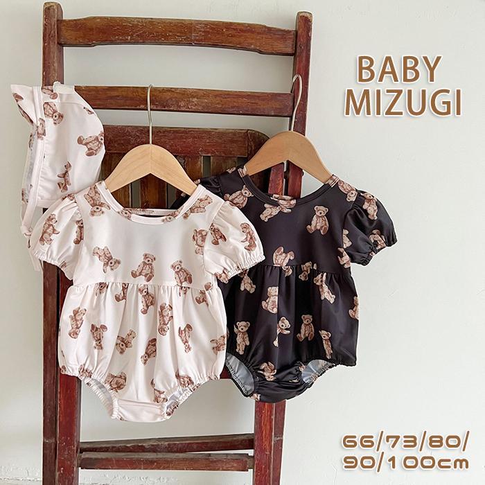 ベビー水着 オールインワン 女の子 ワンピース 子供 キッズ クマ 熊 女の子水着 子供用 ロンパース水着 UVカット 焼け防止 くま柄 海水浴 温泉 練習用 かわいい