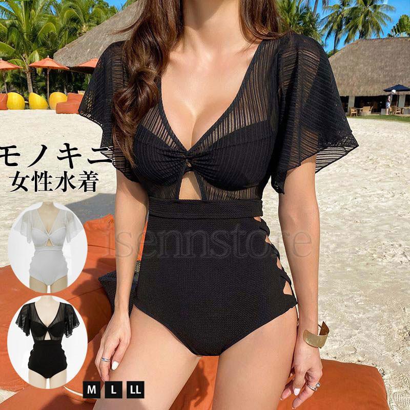 モノキニ 水着 オールインワン レディース ワンピース セクシー バンドゥビキニ ワイヤー 無地 Vネック フリル 女性 ママ水着 盛れる カバーアップ