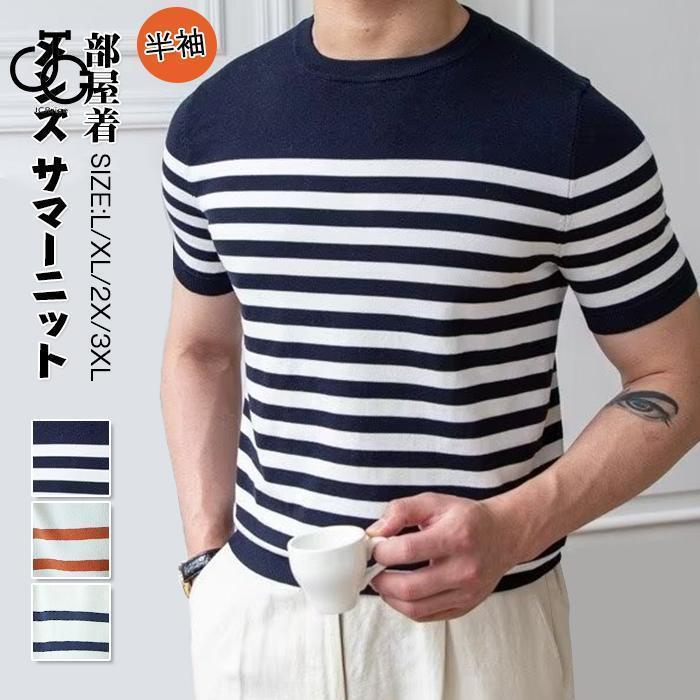 半袖ニット メンズ サマーニット サマーセーター ニットTシャツ トップス カットソー カジュアル ビジネス 無地 薄手 半袖 仕事