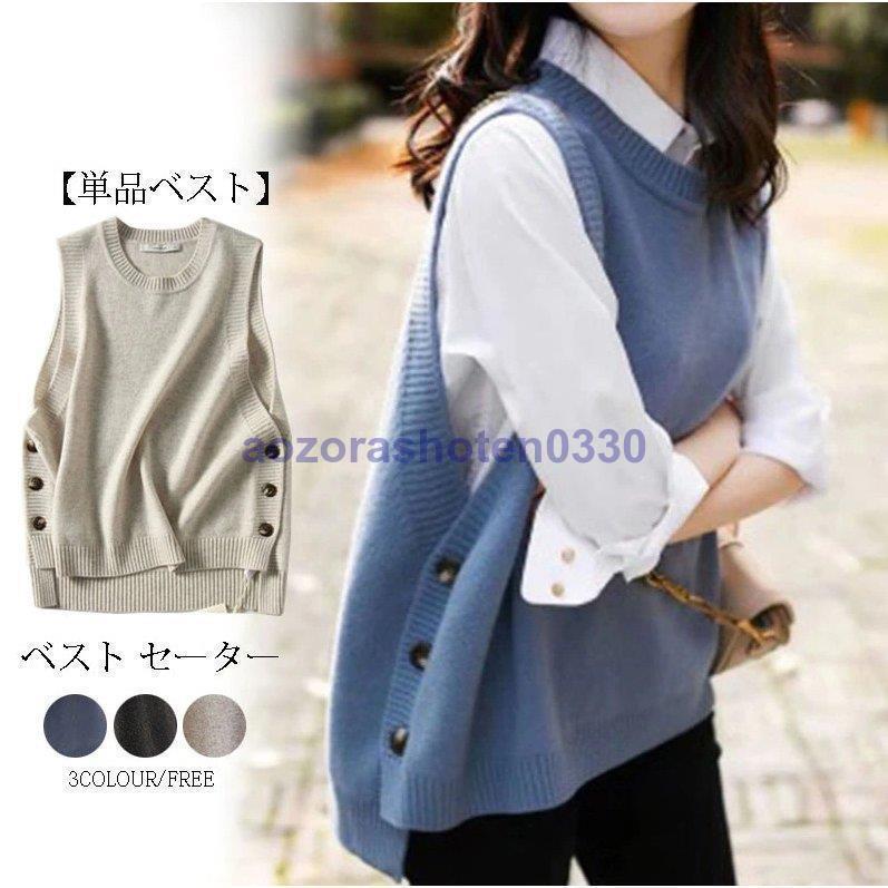 ベスト ニットベスト レディース ノースリーブ ネック セーター ボーダー柄 プルオーバー ゆったり 大きいサイズ おしゃれ 秋 新作 着痩せ