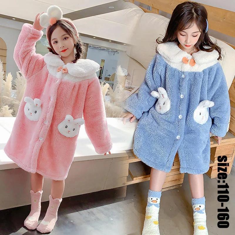 バスローブ ルームウェア ワンピース キッズ パジャマ 子供パジャマ フランネル ガウン 女の子 秋冬 厚手 暖かい モコモコパジャマ 部屋着 かわいい 長袖