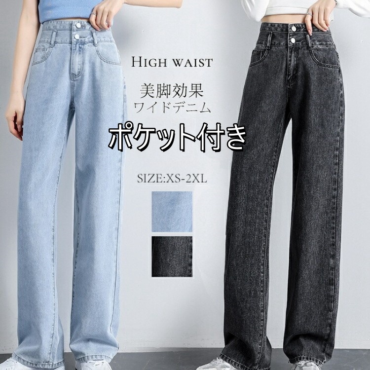 デニム ワイドパンツ 美脚 レディース シルエット 綺麗なハイウエスト デニム パンツ 大人カジュアル