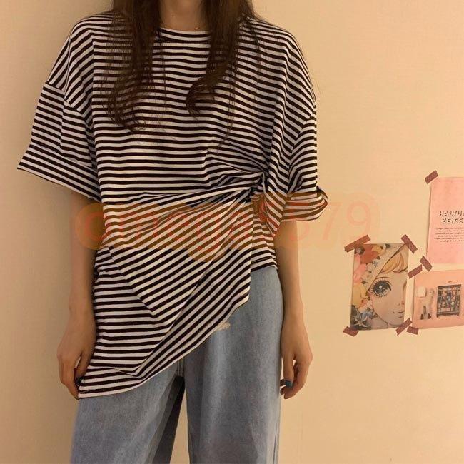 Tシャツ レディース ゆったり 半袖Tシャツ ボーダー柄 夏Tシャツ 五分丈袖 縞柄 カットソー サマーTシャツ 丸首 クルーネック